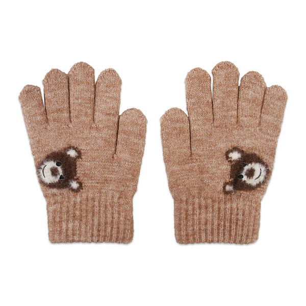 Перчатки Lanson Kids трикотажные с медвежонком бежево-коричневые