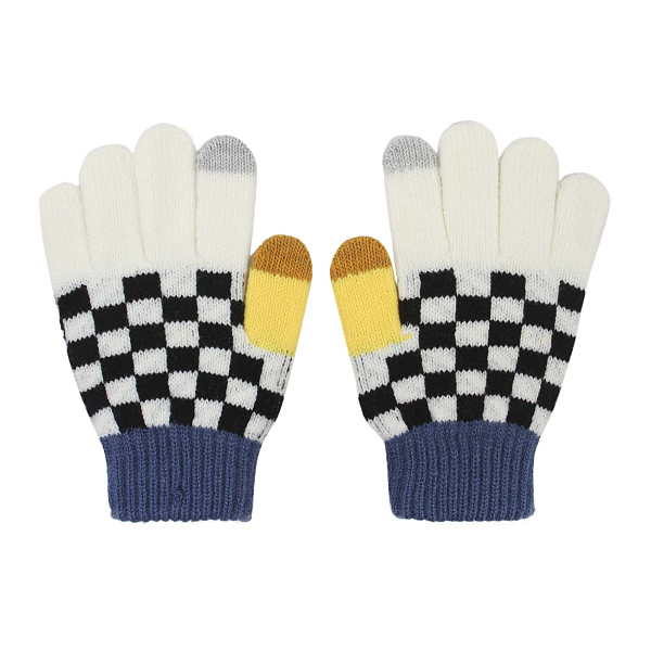 Перчатки Lanson Kids трикотажные с цветными акцентами и принтом шахматная клетка черно-белые