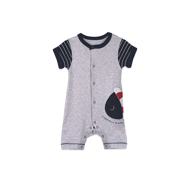 Облегченный песочник-ромпер с коротким рукавом — чудесный повседневный вариант для мальчика 3-6 месяцев. Пошитый из гипоаллергенного дышащего натурального хлопка, он приятен к телу, чудесно пропускает воздух, что особенно важно в жару. Швы тщательно прострочены, чтобы не раздражать нежную кожу малыша, а кнопки между ножками надежно удерживают памперс. Цельный крой обеспечивает удобство и комфорт ребенку. А практичный серый цвет и аппликация-рыбка на боку не выгорают, стойко переносят частую стирку, а после глажки вещь сохраняет свой первоначальный вид. Рекомендовано для детей ясельного возраста.