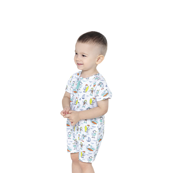 Песочник с изображением забавных птенцов разнообразит гардероб маленького мальчика. Изделие имеет эргономичный крой (распашной) на змейке по всей длине. Это позволяет быстро переодеть ребенка, а также легко сменить подгузник. Песочник изготовлен из дышащего материала, состоящего на 95% из хлопка и 5% эластана, благодаря чему обеспечиваются приятные тактильные ощущения на нежной коже малыша. Такая ткань легко отстирывается от загрязнений и выдерживает многоразовые циклы в стирки в автоматическом режиме, быстро сохнет. Полукомбинезон рассчитан на мальчика ясельного возраста. Требуется предварительная стирка.
