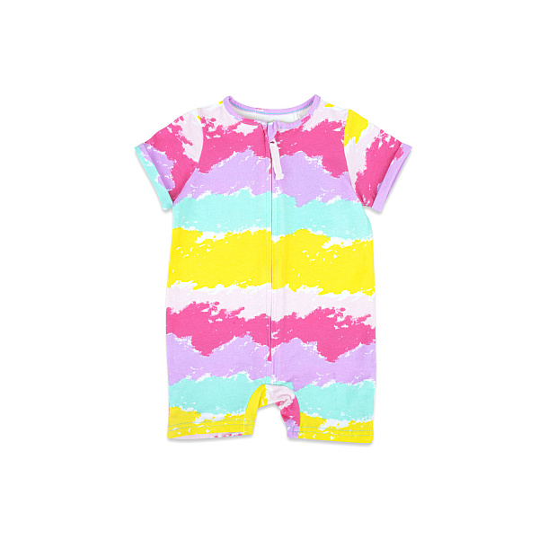 Яркий детский комбинезон для прогулок из мягкого хлопкового трикотажа станет чудесным приобретением на жаркую погоду. Песочник оборудован комфортной центральной застежкой-молнией, которая заканчивается рядом кнопок. Такой комбинезон можно быстро надеть на ребенка или расстегнуть нижнюю его часть для смены подгузника. Песочник имеет короткие рукава и штанишки. А высокое содержание хлопка в составе ткани обеспечивает мягкий уход за кожей малыша. Хлопок является природным антисептиком, он препятствует развитию бактерий на поверхности кожи ребенка и излишнему скоплению влаги. Изделие подходит детям ясельного возраста.