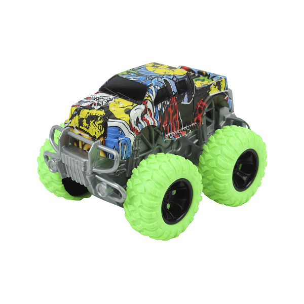 Новая модель из серии Монстр-трак: инерционный «Пикап». Это полноприводный игрушечный автомобиль. У него крупные колеса, благодаря которым он может вращаться на 360 градусов вокруг своей оси и преодолевать препятствия во время езды. Реалистичный и яркий дизайн машинки порадует любого юного автолюбителя.