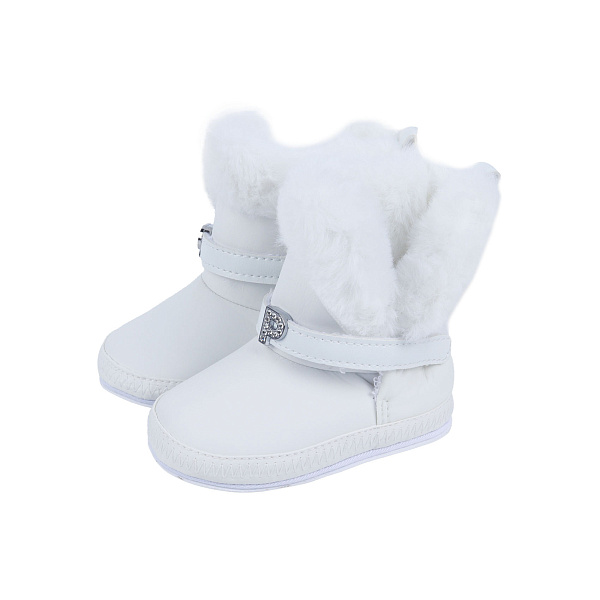 Если вы хотите порадовать свою модницу комфортной и стильной обновкой, то выбирайте эту модель пинеток белого цвета. Они выполнены из износостойкого и приятного на ощупь текстиля с пушистым и мягким утеплителем, сохраняющим ножку ребенка в тепле. В качестве декоративного элемента использован тоненький ремешок с пряжкой. Подошва выполнена из ПВХ, материал не утяжеляет ботинок. Благодаря универсальности внешнего вида пинетки подойдут под любой нарядный или повседневный образ.