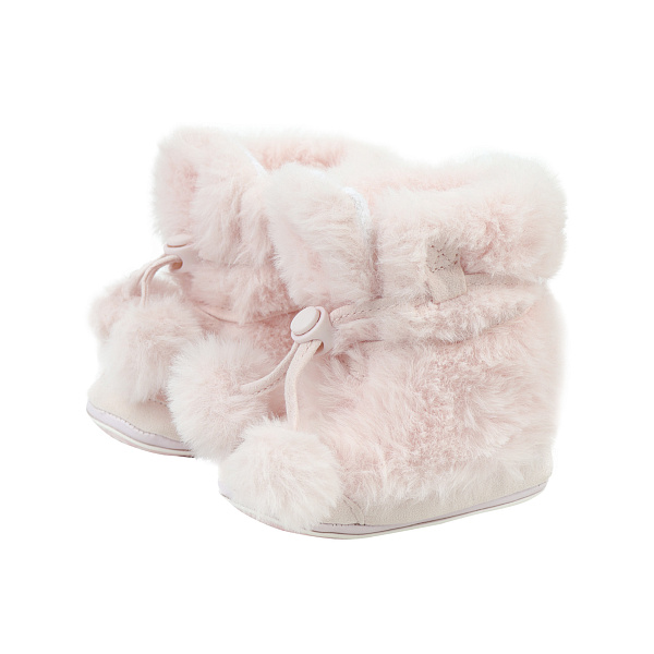 Пинетки Pasito меховые с фиксатором и помпонами розовые