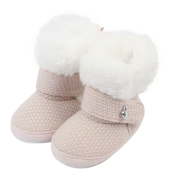 Текстильные пинетки для девочки выполнены в нежном розовом цвете с аккуратным вязанным дизайном, который станет милым дополнением к детскому гардеробу. Модель украшена мягкой пушистой оборкой и застёжкой-липучкой с декоративным серебристым элементом в виде сердечка, обеспечивающей удобную фиксацию и комфорт при носке. Лёгкие и гибкие пинетки обеспечивают свободу движений малышки, не сдавливая ножки.