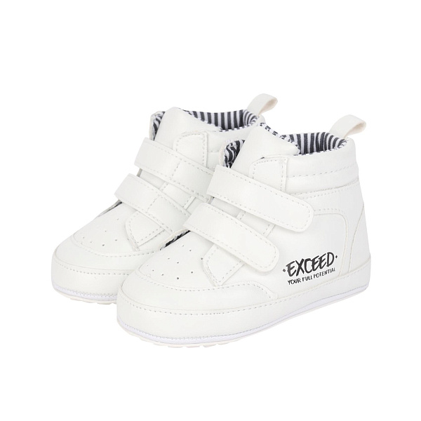 Стелька и подошва разработаны в соответствии с особенностями анатомии малыша. Две застежки на липучках позволят родителям быстро обуть ребенка и не возиться с завязыванием шнурков. Цвет изделия – белый.