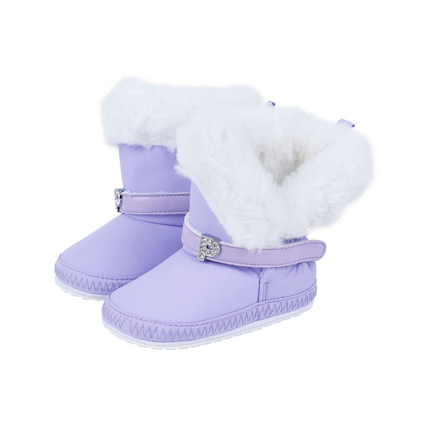 Пинетки нежного лавандового оттенка бренда Pasito предназначены для малышек ясельного возраста. Они пошиты из мягкого и приятного на ощупь текстиля сверху и мягкого меха внутри. Подкладка и стелька также пошиты из ткани. Декорированы пинетки тоненьким ремешком с пряжкой – это облегчает обувание обуви и плотно фиксирует ее на ноге. Подошва выполнена из ПВХ, такой материал не утяжеляет ботинок.