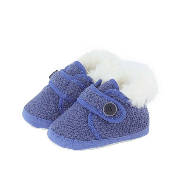 Синие пинетки с белой меховой вставкой послужат отличным выбором для маленьких мальчиков ясельного возраста.