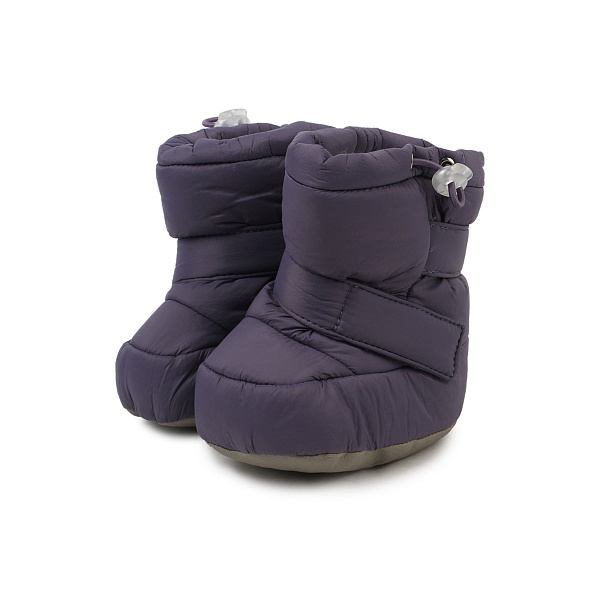 Тёплые пинетки для малышей фиолетового цвета станут надёжной защитой маленьких ножек в холодное время года. Стильный лаконичный дизайн и мягкие объёмные формы создают ощущение уюта и заботы. Практичная застёжка-липучка помогает легко надевать пинетки и надёжно фиксировать их на ножке, не вызывая дискомфорта.