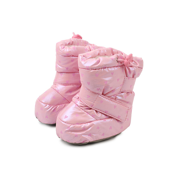 Тёплые пинетки для девочки нежно-розового цвета станут надёжной защитой маленьких ножек в холодное время года. Очаровательный дизайн с маленькими сердечками и мягкие объёмные формы создают атмосферу комфорта и тепла. Практичная застёжка-липучка и кулиска обеспечивает надёжную фиксацию, не вызывая дискомфорта.