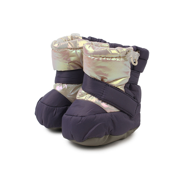 Тёплые пинетки для мальчика филетового цвета с яркой перламутровой вставкой спереди станут надёжной защитой для маленьких ножек в холодное время года. Стильный дизайн с объёмными формами и яркой вставкой создаёт привлекательный и современный образ. Надёжная застёжка-липучка и кулиска обеспечивают удобное и комфортное закрепление пинеток, не сдавливая ножку.