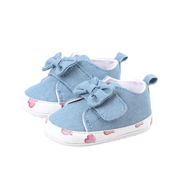 Пинетки Pasito текстильные с бантиком с белой вставкой с рисунком сердечки голубые