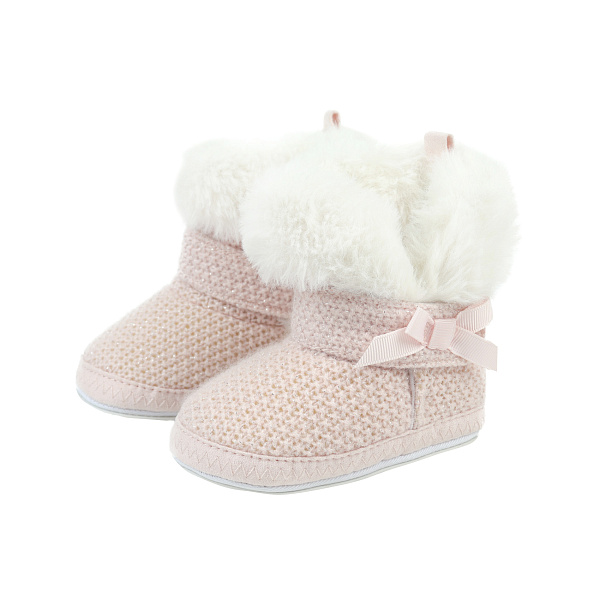 Пинетки Pasito текстильные с белым мехом вязаные розовые