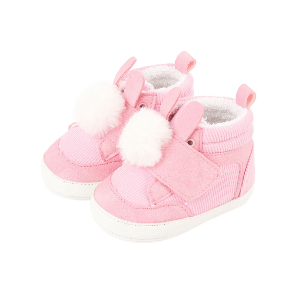 Пинетки Pasito текстильные ясельные на липучке с пушистым помпоном розовые