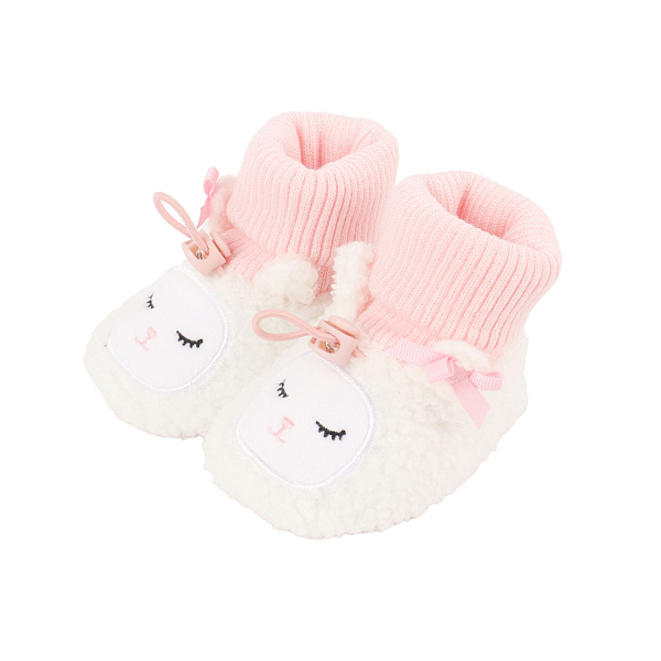 Пинетки Pasito текстильные ясельные плюшевые овечки бело-розовые