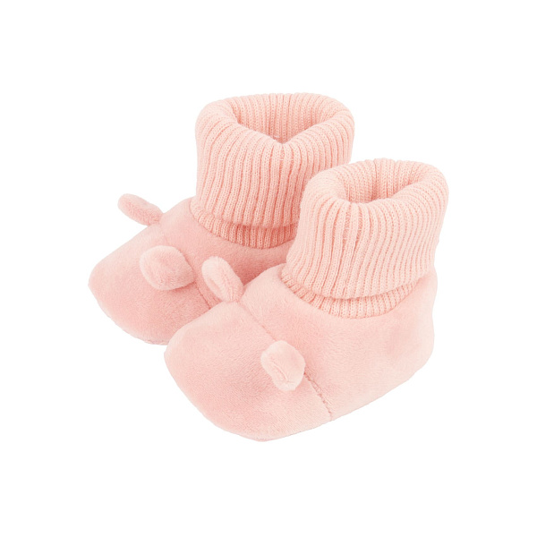 Милые розовые пинетки из пушистого текстиля согреют малыша дома или на прогулке. Верх обуви изготовлен из прочного текстиля, приятного на ощупь. Подкладка и стелька выполнены из хлопчатобумажной ткани, которая проводит воздух и влагу, сохраняет тепло и не вызывает раздражение кожи. Высокие эластичные манжеты плотно фиксирует пинетки на ножке, не сдавливая ее.