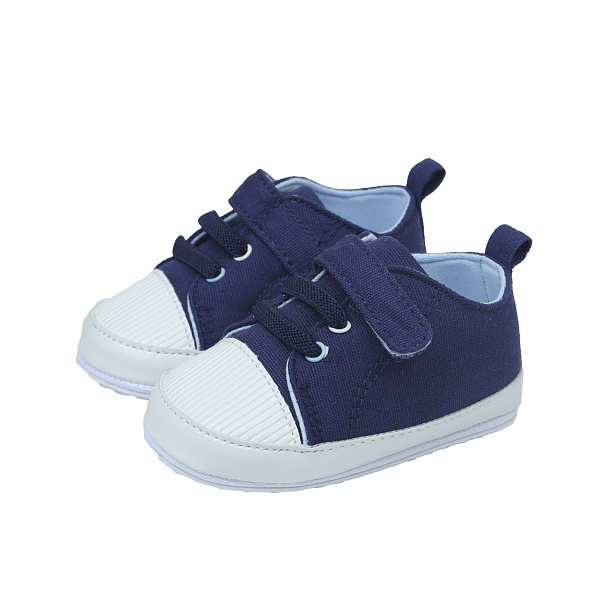 Эти пинетки не оставят равнодушными ни малышей, ни родителей. В основе верха лежит мягкий и приятный на ощупь текстиль глубокого синего цвета хорошо пропускает воздух, благодаря чему ноги ребенка не перегреваются. Застегивается обувь на липучки и декоративную шнуровку – малышам понравится, что обувь выглядит будто «взрослая», а родители останутся довольны тем, что пинетки не спадут во время игр ребенка. Подошва из ТПР легкая и износостойкая.