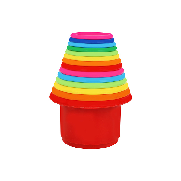 Логическая игрушка состоит из 14 разноцветных элементов. Каждый стаканчик имеет свой размер. Их необходимо расположить строго по мере убывания, чтобы собрать пирамидку правильно. Такое занятие можно предложить мальчику или девочке с годовалого возраста. Манипуляции с деталями объяснят ребенку понятие цвета и формы, научать логическому мышлению, улучшат моторику рук. Изделия изготовлены из прочного сертифицированного пластика, в составе которого нет вредных веществ. Такой материал не впитывает влагу, легко отмывается от загрязнений, отвечает санитарным требованиям.