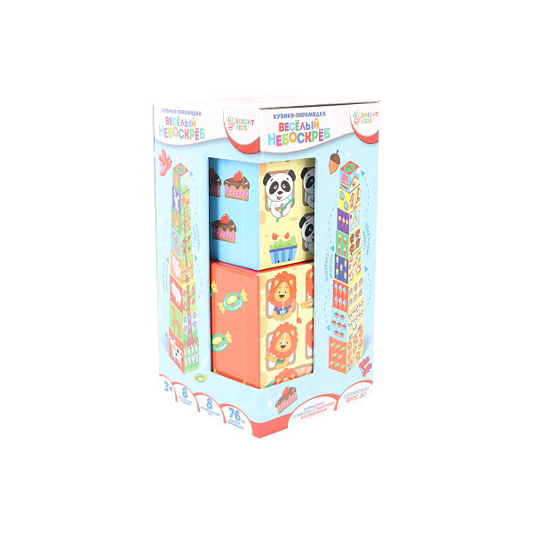 Пирамидка-кубики «Веселый небоскреб» совершенствует творческие навыки ребенка и моторику рук. Разработан согласно рекомендациям психологов и педагогов. На поверхности разноцветных кубиков изображены животные, птицы, цветы и растения, с которыми маленький исследователь встретится в реальном мире. Играя, ребенок развивает усидчивость, логическое мышление и память. Забава подойдет для малышей от года и старше, станет отличным подарком семьям с детьми. Малышу будет интересно строить башни и небоскребы, ребенок постарше может изучить основы счета, благодаря красочным заданиям на кубиках.