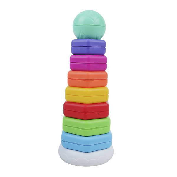 Игрушка изготовлена из прочного пластика, устойчивого к повреждениям и не содержащего вредных веществ. Благодаря своей конструкции она стимулирует развитие мелкой моторики, зрительного восприятия, координации движений и логического мышления. Яркие контрастные цвета и простая форма колец помогают ребенку осваивать понятия размера, формы и последовательности, постепенно формируя первые навыки классификации и сравнения.