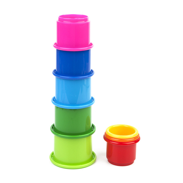 Задача собрать пирамиду из разноцветных стаканчиков придется по душе малышам с годовалого возраста. Построить башню можно при условии четкого соблюдения последовательности деталей. После нескольких попыток ребенок научится зрительно соотносить размеры элементов. Игровая деятельность формирует основы математических знаний, знакомит с понятием цвета, размера, пропорций, активирует координацию движений и моторику рук. Яркие стаканы из экологичного пластика можно использовать для игры в ванной или песочнице. Материал безопасен и экологичен, легко отмывается теплой водой.