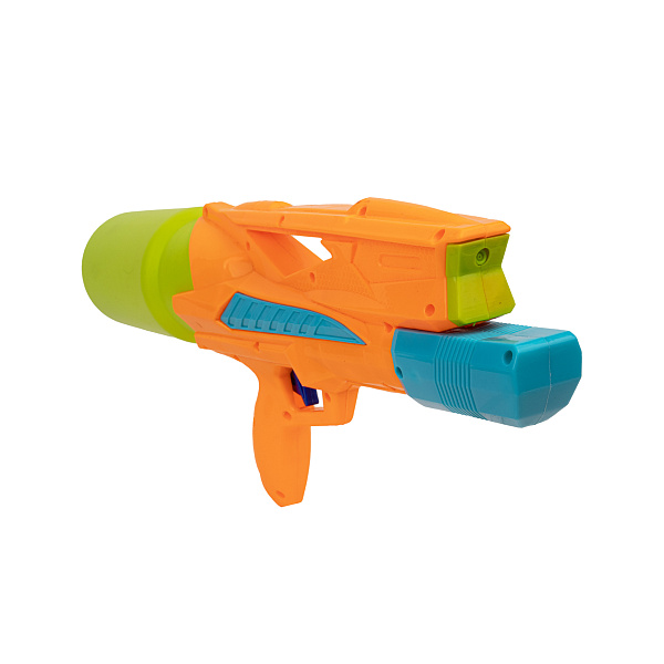 30-сантиметровый водный бластер с вместительным встроенным резервуаром оснащен двумя типами насосов. Курковый насос подходит для ведения ближнего боя короткими струями, а размещенная под брандспойтом помпа позволяет получить длинную и мощную очередь дальнего действия.