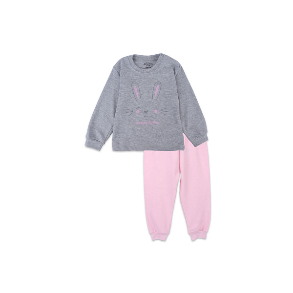 Пижама AZIZ bebe Happy bunny лонгслив серый и брюки розовые