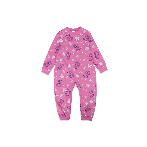 Пижама из легкого трикотажа создана специально для маленьких леди. Она гарантирует безмятежный сон и полноценный отдых для ребенка в домашней обстановке. Комбинезон «Эльза» ярко-розового цвета ограничено украшен принтом из звезд и контура снежной дивы. В таком изделии малышке будет максимально комфортно, все швы мягкие и не доставляют дискомфорт для нежной кожи малыша. Натуральный хлопок обеспечивает теплообмен и способствует крепкому сну малыша. Домашний комбинезон из легкого хлопка снабжен кнопками с внутренней стороны ног, что позволяет легко менять подгузника. Такой домашний костюм станет прекрасным подарком для девочки. При желании можно дополнить комплект носочками и чепчиком.