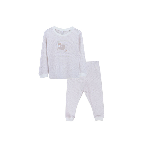 Уютная пижама с длинным рукавом имеет свободный крой, приятна на ощупь. Она создаст комфортные условия для сна ребенку младшего возраста. Модель выполнена в спокойной цветовой гамме, дополнена окантовкой и манжетами белого цвета. Малышей заинтересует рисунок на груди в виде милой овечки. Мягкий трикотаж на 100% состоит из натурального хлопка. Материал обеспечивает вентиляцию, хорошо впитывает влагу, а аккуратные швы не натирают кожу. Комплект не растягивается, стойко переносит регулярную стирку в автоматическом и ручном режиме. Ткань долго сохраняет привлекательность и потребительские свойства.