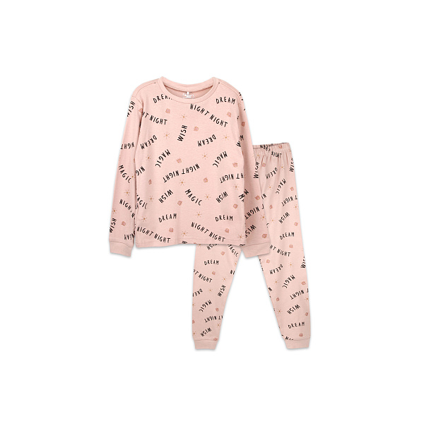 Пижама Lanson Kids лонгслив и брюки с надписями розовая