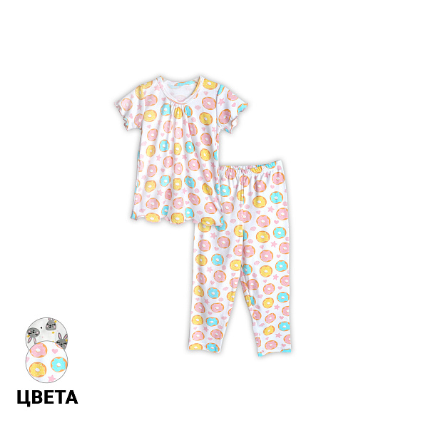 Утепленная пижама для девочки ростом 82-102см состоит из футболки с коротким рукавом и брюк полной длины. Оригинальный цветовой дизайн по вкусу детворе. Футболка имеет декоративную отделку в виде трикотажного шва понизу и краю рукава. Декоративная сборка у выреза горловины создана еще и для того, чтобы сделать модель комфортной для носки и менее облегающей.