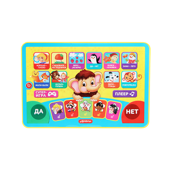 Интерактивный планшет «Маленький умник» предназначен для любознательных малышей старше 3 лет. Ребенок оценит яркий дизайн и разноцветные кнопки, на которые можно нажать. В памяти игрушки хранится 130 заданий и вопросов, 10 игр, 10 песенок и мелодий. Включая каждый режим, ребенок развивает память, слух, моторику рук, тренирует внимание и расширяет кругозор. Корпус изготовлен из пластика.