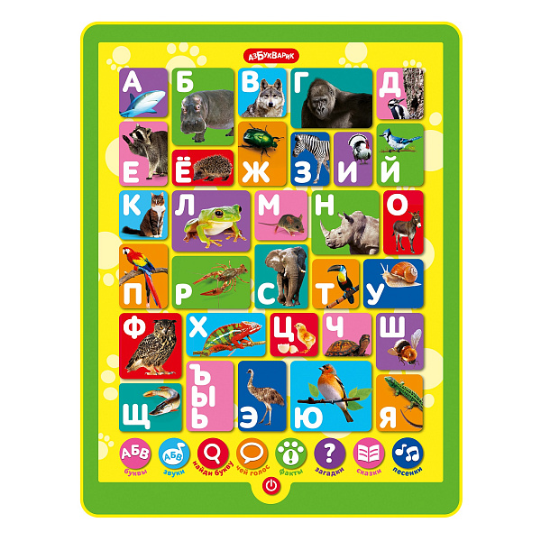 Игровой детский планшет расскажет малышу новые и увлекательные факты о животных, а также поможет выучить буквы алфавита. Во время игры малыш легко проверит свои знания, ответив на 100 подготовленных для него вопросов о животных, а когда устанет от работы – споет любимые детские песни или послушать сказки.