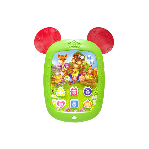 Оригинальная игрушка обладает массой полезных функций. В памяти устройства собрано более 20 народных потешек, сказка про Курочку Рябу, голоса и наименования новых для него животных. Ребенок сам активирует нужные опции, нажав на яркие кнопки. Приятным дополнением являются прорезыватели в форме ушек из мягкого силикона и разноцветная подсветка. Планшет надолго займет внимание малышей годовалого возраста. Взаимодействие с ним положительно повлияет на память, речь, логическое мышление и моторику рук. Корпус изготовлен из прочного сертифицированного пластика, стойко переносящего ударные нагрузки. Для полноценной работы требуются 3 батарейки ААА.