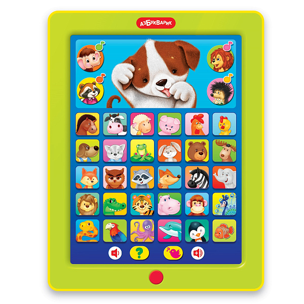 Прекрасная музыкальная игрушка, которая способствует развитию интеллекта и памяти ребенка. Пластиковый планшет с яркими изображениями животных обладает функцией обучения: при нажатии на изображение животного воспроизводится звук, который животное издает и его название. В нижней части планшета присутствую кнопки, которые запускают один из двух вариантов игры. В первом случае малышу воспроизводится звук и он должен угадать животное, во втором, нажать на иконку с животным по его названию.