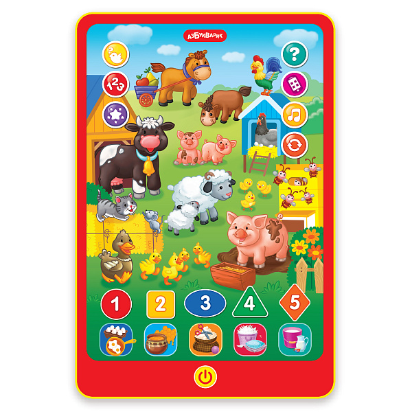 В памяти устройства 60 оригинальных загадок и вопросов, 14 озвученных животных, 14 песенок. Участие в логических игровых викторинах положительно повлияет на общее развитие мальчиков и девочек, их речь, память, логическое мышление. При этом материалы и комплектующие, использованные производителем, безопасны для детского организма и изготовлены из экологичного пластика.