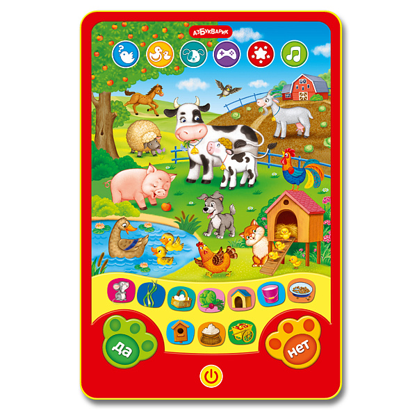 Яркий планшет с изображениями домашних животных привлечет внимание ребенка. Чтобы включить увлекательную и полезную игру, необходимо прикоснуться к экрану.