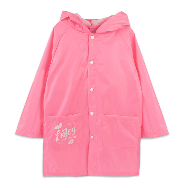 Легкий плащ-дождевик для девочек защитит малышку во время прогулки. Изделие яркого розового цвета, который хорошо виден с большого расстояния. Длина плаща – до колена. Она не дает сильным порывам ветра попасть внутрь.