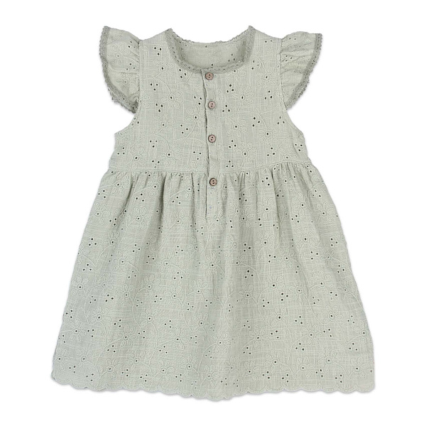 Это прекрасное платье для девочек выполнено из 100% хлопка, что гарантирует комфорт и легкость в носке. Нежный зеленый цвет изделия напоминает летний пейзаж, добавляя образу свежести и естественности.
