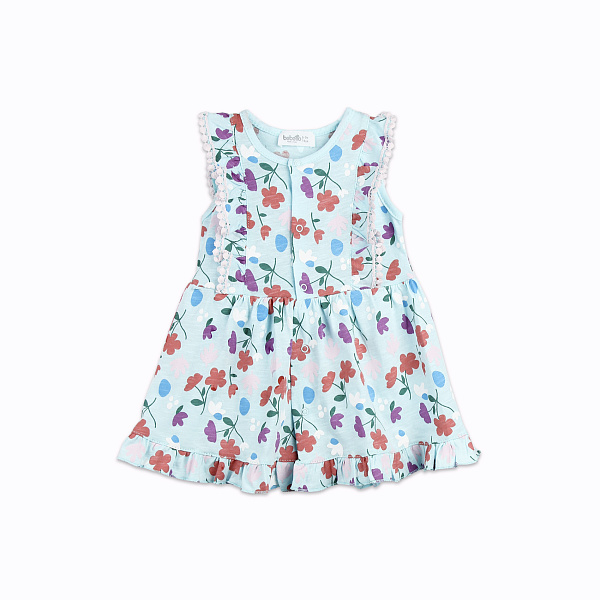 Яркое летнее платье для девочки привлекает внимание гармоничным сочетанием цветов и удачным кроем. Модель имеет глубокую застежку спереди, эффектные оборки и свободный крой. В таком платье ребенку будет комфортно даже в очень жаркий день. Полотно из 100% натурального хлопка чудесно пропускает воздух, не мнется, не линяет, а также быстро впитывает излишки влаги. Отсутствие в составе синтетических волокон исключает аллергическую реакцию, появление на коже ребенка опрелостей и раздражения. Изделие стойко переносит многократные циклы стирки, долго время сохраняет эстетичный внешний вид. Рекомендовано для детей ясельного возраста.