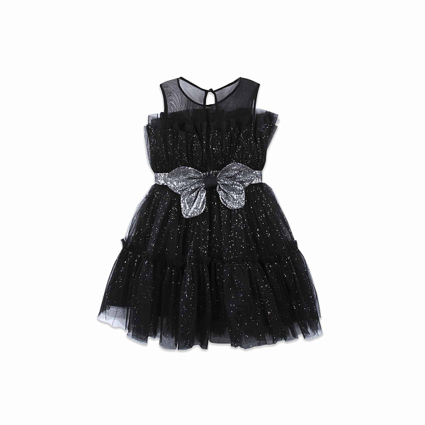 Нарядное платье в комплекте с ободком вызовет искренний восторг у юной модницы. Модель привлекает внимание стильным дизайном, визуально напоминает бальное платье. Пышный верх собран серебристым пояском в области талии. Этот декоративный элемент поддерживают блестки, разбросанные по всей поверхности наряда. Малышка почувствует себя настоящей принцессой, получит массу незабываемых эмоций. Аксессуар для волос станет удачным завершающим штрихом праздничного образа.