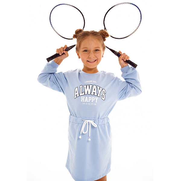 Оригинальное платье предназначено для девочки дошкольного возраста. Модель в спортивном стиле украшена графическим рисунком и контрастными полосами на рукавах. Манжеты и шнурок в области талии гарантируют комфортную посадку на фигуре любого типа. Изделие гармонично сочетается с туфлями и кроссовками. Это позволяет создавать модные образы для прогулок и походов в гости.