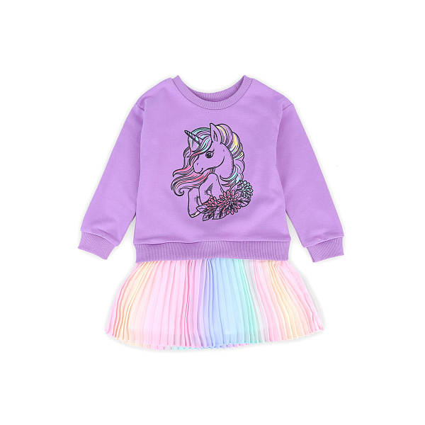 Оригинальная модель футболки Lanson Kids вызовет восторг у ребенка ясельного возраста. При разработке дизайна за основу взят образ сказочного единорога. Платье с длинным рукавом и пышной юбкой можно использовать для вечерних прогулок в парке, торжественных мероприятий, посещения родственников. Свободный крой обеспечит комфортную посадку на фигуре любого типа. Для пошива использовано трикотажное полотно на основе натурального хлопка и легкая синтетическая ткань. Наряд долгое время сохраняет привлекательность и потребительские свойства.