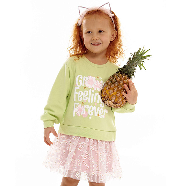 Платье Lanson Kids Groovy feelings forever зеленое с розовой юбкой с цветочным принтом