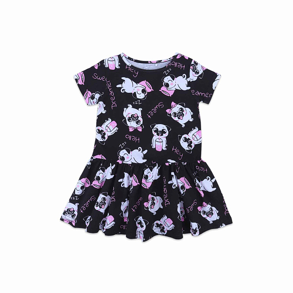 Забавное детское платьице Lanson kids подарит яркость красок маленькой моднице. Эластичная ткань на основе хлопка дарит не только комфорт, но и обеспечивает естественную вентиляцию, благодаря чему тело не перегревается несмотря на черный цвет. Свободный крой, летучая юбка и короткие рукава не сковывают движения в процессе носки. Завершает образ легкий игривый принт из собачек, который добавляет игривости в летний гардероб. Такой платье чудесно подойдет на прогулку или на мероприятие.