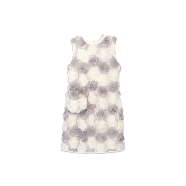Платье Lanson Kids с бело-сиреневыми розами с сумкой белое
