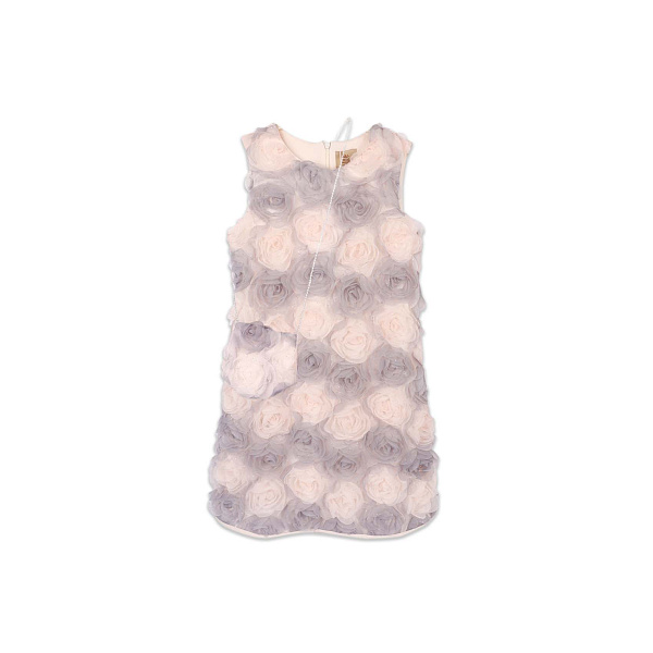 В гардеробе каждой девочки должно быть нарядное платье. Красивый, стильный и изысканный наряд с длинным подолом будет уместным на любом празднике. Платье без рукавов на широких бретелях имеет прямой крой и украшения в виде черных и белых декоративных роз. Низ оторочен белой тесьмой.