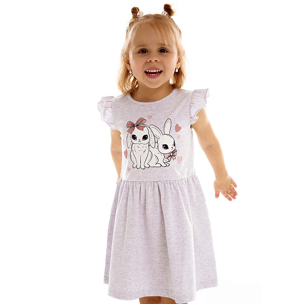Платье Lanson Kids с изображением кроликов с сердечками серое