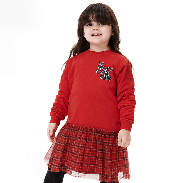 Яркое и стильное платье с фатиновой юбкой станет отличным выбором для маленьких модниц. Верх платья выполнен из мягкого и дышащего хлопка (80%), что обеспечивает комфорт и не раздражает кожу, а добавление полиэстера (20%) делает материал более прочным и долговечным. Красный цвет платья в сочетании с нашивкой на груди создает смелый и стильный образ. Длинные рукава и круглый вырез горловины обеспечивают комфортную посадку, а свободный крой не стесняет движений, позволяя ребенку активно играть и двигаться.