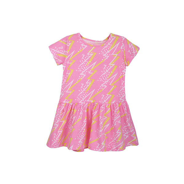 Юным принцессам для повседневной носки и праздничных мероприятий отлично подойдет розовое платье, представленное Lanson Kids. Простой и незатейливый крой не станет сковывать движений, а широкая рюша, расположенная по краю изделия, придаст нежности и деликатности красочному платью. Состоит из хлопка и эластана, комбинация которых осуществляет хорошую посадку на все типы фигуры, не топорщась и не провисая. Можно надевать в жаркое время суток, так как ткань хорошо вентилируется и дарит комфорт. Имеет рисунок в виде молний, которые придают изюминки изделию.